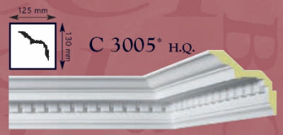 Плинтус потолочный 3005 размер 125х130 мм длина 2,00 м * можно использовать для скрытого освещения Температурная стойкость -20° +75°С
