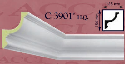 Плинтус потолочный 3901 размер 125х150 мм длина 2,00 м * можно использовать для скрытого освещения Температурная стойкость -20° +75°С