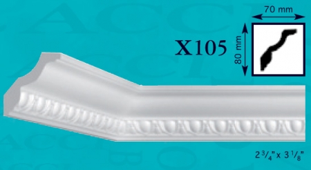 Плинтус потолочный X105, Bovelacci Extrastyl размер 70х80 мм длина 2,00 м |