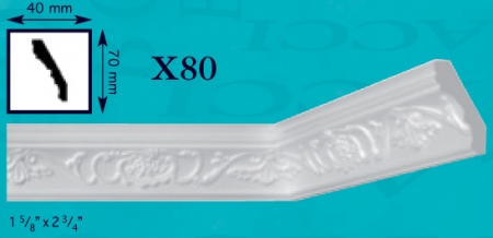 Плинтус потолочный X80, Bovelacci Extrastyl размер 40х70 мм длина 2,00 м |