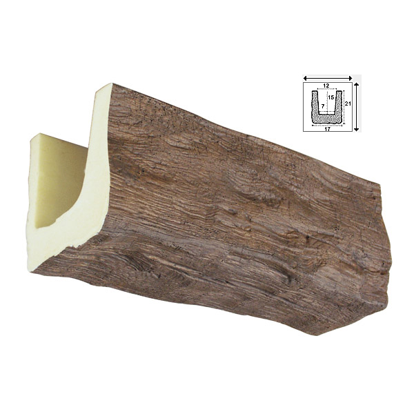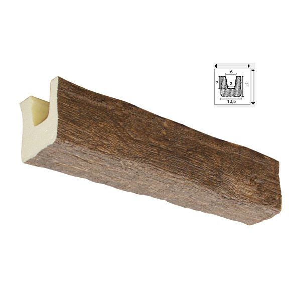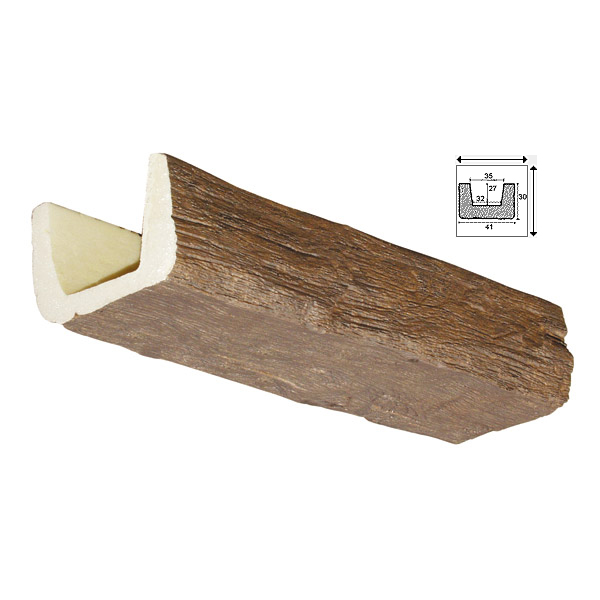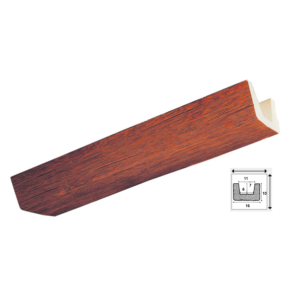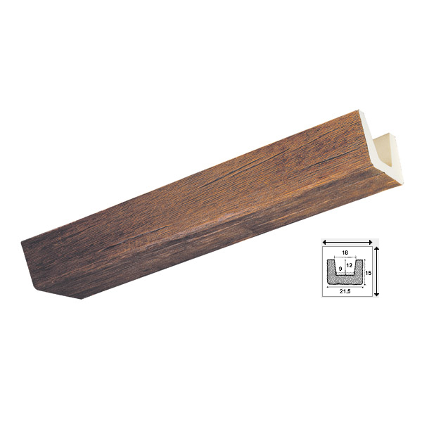 Декоративные пенополиуретановые балки, имитирующие цвет и структуру дерева. Длина балки 3м. Выпускаются в четырех цветах: старое дерево, орех, а также светлый дуб и красное дерево. Каждый цвет в выпускается в 4-х модификациях, минимальные размеры 6*10см (высота*ширина), максимальные 15*21,5см. Также в ассортименте этой серии – консоли, панели и крепежные декоративные элементы.