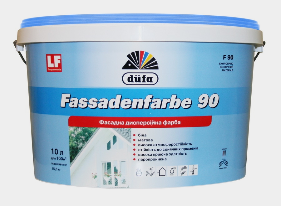 Водно-дисперсионная краска Бюджетфарбе для внутренних работ. Предназначена для стен и потолков. Имеет высокую укрывистось, образует поверхность с ограниченной стойкостью к мытью.
