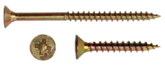Саморезы для столярных работ по дереву, потайная головка, шлиц Ph №2, редкая резьба, желтый цинк.