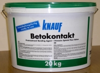 Кнауф Бетоконтакт (Betokontakt) - эта грунтовка представляет собой синтетическую эмульсию с чистым кварцевым песком. Наносится на бетонные основания с целью обеспечения высокой сцепляемости основания с гипсовой штукатуркой.