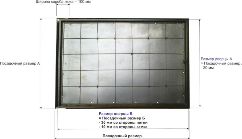 Дверца люка имеет ребра жесткости по периметру. Количество ребер жесткости зависит от размера люка и пожеланий заказчика.