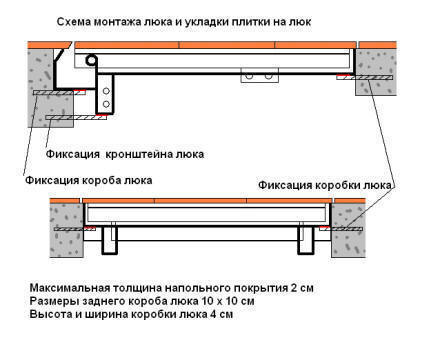 люка и зависит от размеров люка, вида и толщины облицовочного материала.