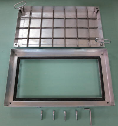 Все люки поставляются в собранном виде с прикрученной к раме крышкой. Монтаж следует производить с прикрученной крышкой, чтобы после высыхания раствора не произошли деформации и не возникло проблем с открыванием и закрыванием люка. Необходимо защитить края рамы и болты от попадания бетонного раствора внутрь, поскольку его будет очень сложно отчистить после высыхания.
