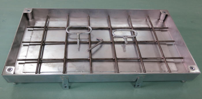 Учитывая возможную эксплуатацию в тяжело-нагруженном состоянии, люки изготовлены из металла с толщиной стенки 4 мм и каркасом жесткости. По внутренней стороне наружная рама усилена дополнительными ребрами жесткости, которые одновременно служат опорой для дверцы люка. По заказу клиента в люках по периметру наружной рамы выполняются крепежные отверстия под крепление анкерами, либо, в случае если люк закладной, привариваются уши, для закладки в готовый проем и жесткой фиксации.