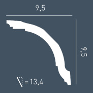 Карниз потолочный CX-128 Ширина - 9.5 см Высота - 9.5 см Длина - 200 см |