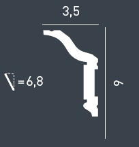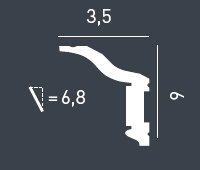 Карниз потолочный CX-143 Ширина - 3.5 см Высота - 6 см Длина - 200 см |