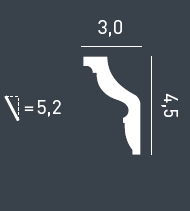 Карниз потолочный CX-149 Ширина - 3.0 см Высота - 4.5 см Длина - 200 см |