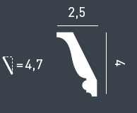Карниз потолочный CX-153 Ширина - 2.5 см Высота - 4.0 см Длина - 200 см |