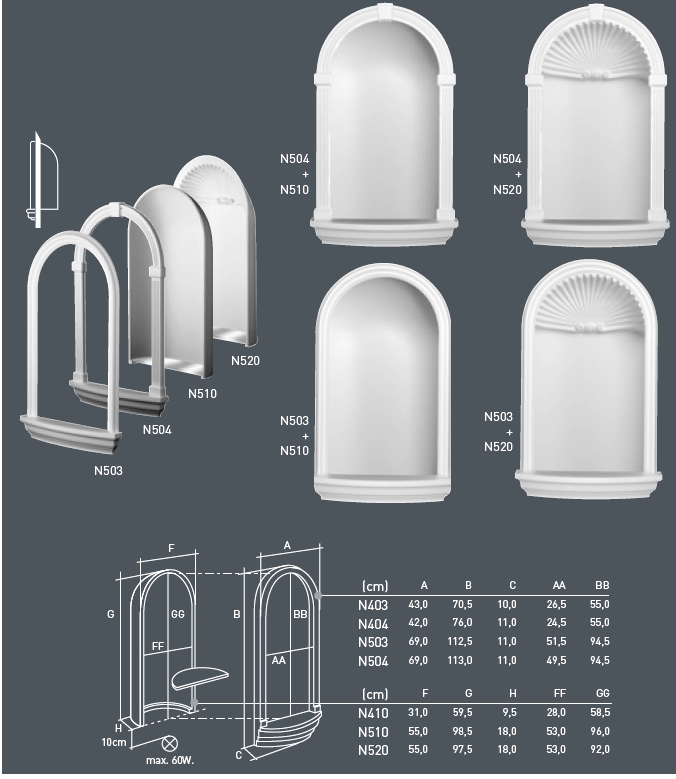 N403 Ширина 43 см Высота 70,5 см Толщина 10 см