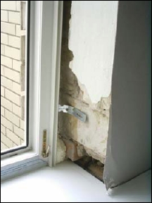 примыкающих элементах окна, где сечение стены минимально.