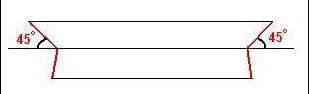 С помощью угломера, отрезаем уголок так, как показано на нижнем рисунке: