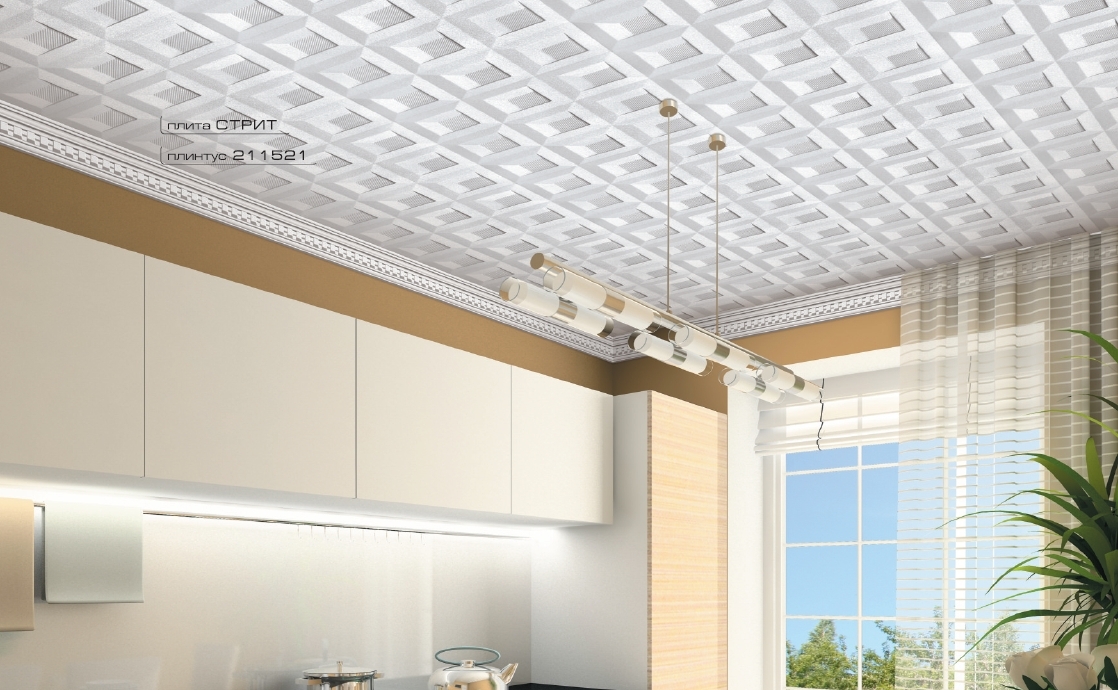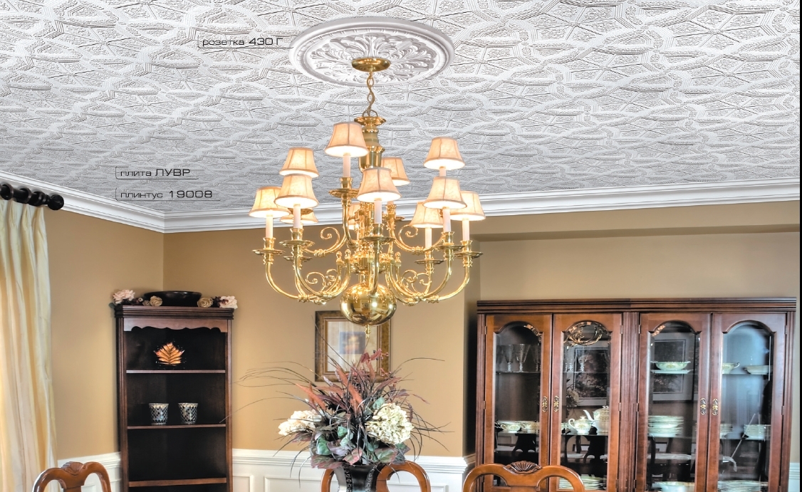 Потолочная плитка является как бы промежуточным вариантом между традиционной окраской потолка (или оклейкой его обоями) и подвесным потолком. Она украсит Ваш потолок, скрывая все его недостатки. Кроме того, при желании можно легко изменить внешний вид потолка, сняв старую плитку и наклеив новую. При этом среди многообразия вариантов всегда можно подобрать подходящий декор потолочной плиты в соответствии со вкусом и финансовыми возможностями. И, кроме того, для наклейки потолочных плит необходимо только желание хозяина и элементарный набор инструментов, который наверняка есть у каждого.