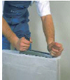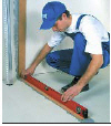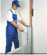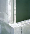 В перегородках могут устраиваться проемы для последующего размещения в них дверей или окон. Возможна установка как деревянных, так и алюминиевых, стальных или пластиковых дверных коробок. Если размеры проема незначительны, т. е. его высота не превышает 1/4 высоты всей перегородки, а общая площадь проема не больше 1/10 от всей площади перегородки, то такой проем или отверстие может вырезаться после монтажа перегородки. Большие проемы устраиваются непосредственно при монтаже. Если ширина дверного проема не превышает 800 мм и над ним находится только один ряд плит, то установка балки перемычки не обязательна. В этом случае рекомендуется устанавливать дверную коробку при монтаже перегородки или делать вспомогательную деревянную монтажную конструкцию, которая обеспечит монтажное положение плит до схватывания шпаклевки в стыках. После высыхания шпаклевки монтажная конструкция убирается.