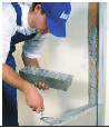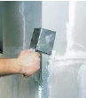 Внешние углы конструкции следует укрепить угловым перфорированным профилем ПУ 31/31, который вдавливается в предварительно нанесенную на угол шпаклевку, после чего широким шпателем наносится выравнивающий слой. При выполнении данной операции можно применять специальный шпатель для внешних углов.