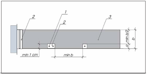 Минимальная величина заделки, а также расстояния между штробами показаны на рисунке.