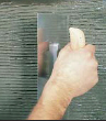 Каждую уложенную плиту необходимо осадить при помощи резинового молотка. Выступивший при этом раствор шпаклевки сразу же убирается и используется в дальнейшем. Толщина вертикальных и горизонтальных швов не должна превышать 2 мм.