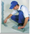 Поверхности перегородок, которые будут находиться под непосредственным воздействием влаги (в душевой, у раковины), рекомендуется покрыть гидроизоляцией «Флехендихт». Ее наносят кистью или валиком. После высыхания нанесенного слоя гидроизоляции углы дополнительно проклеиваются уплотнительной гидроизоляционной лентой «Флехендихтбанд».