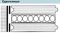 При повышенных требованиях к звукоизоляции, а также при необходимости размещения внутри перегородки инженерных коммуникаций, применяют сдвоенные перегородки.