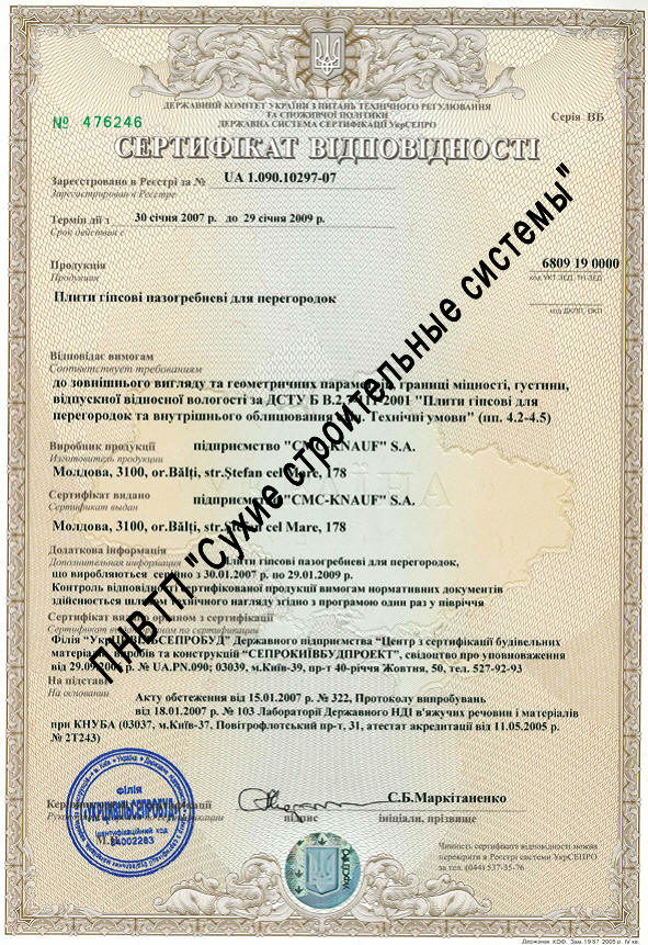 Кнауф применяются для сооружения перегородок в помещениях с сухим и нормальным режимами влажности. Гипсоплиты Кнауф поставляются в форме прямоугольного параллелепипеда. Стыковая и опорная поверхности имеют на соответствующих сторонах паз или гребень. Производятся два вида плит: обычные и влагостойкие.