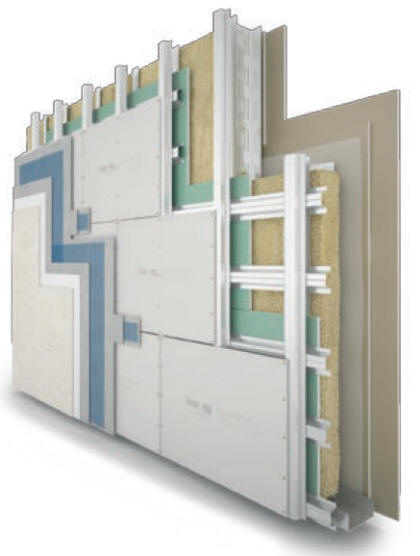 Плита КНАУФ Фасадная может применяться в стенах на металлическом (рис. 1) и деревянном (рис.2) каркасах.
