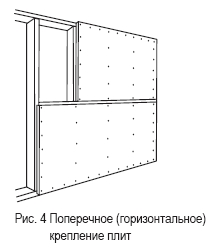 При креплении плит в продольном направлении торцевые стыки листов должны быть смещены друг относительно друга на расстоянии не менее 400 мм, в поперечном направлении – на шаг стоек.