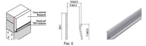 Для заделки открытых нижних кромок плит в цокольной части, а также кромок над проемом применяется защитный ПВХ-профиль (рис. 6).