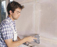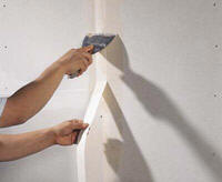 Увлажненную бумажную ленту вдавить шпателем в слой шпаклевки.